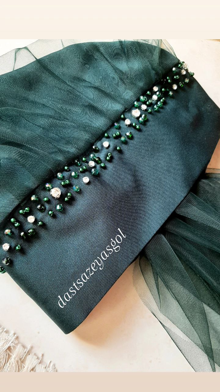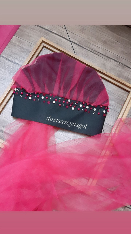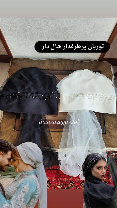 توربان کرپ جواهردوزی شده با شال توری در رنگبندی متنوع