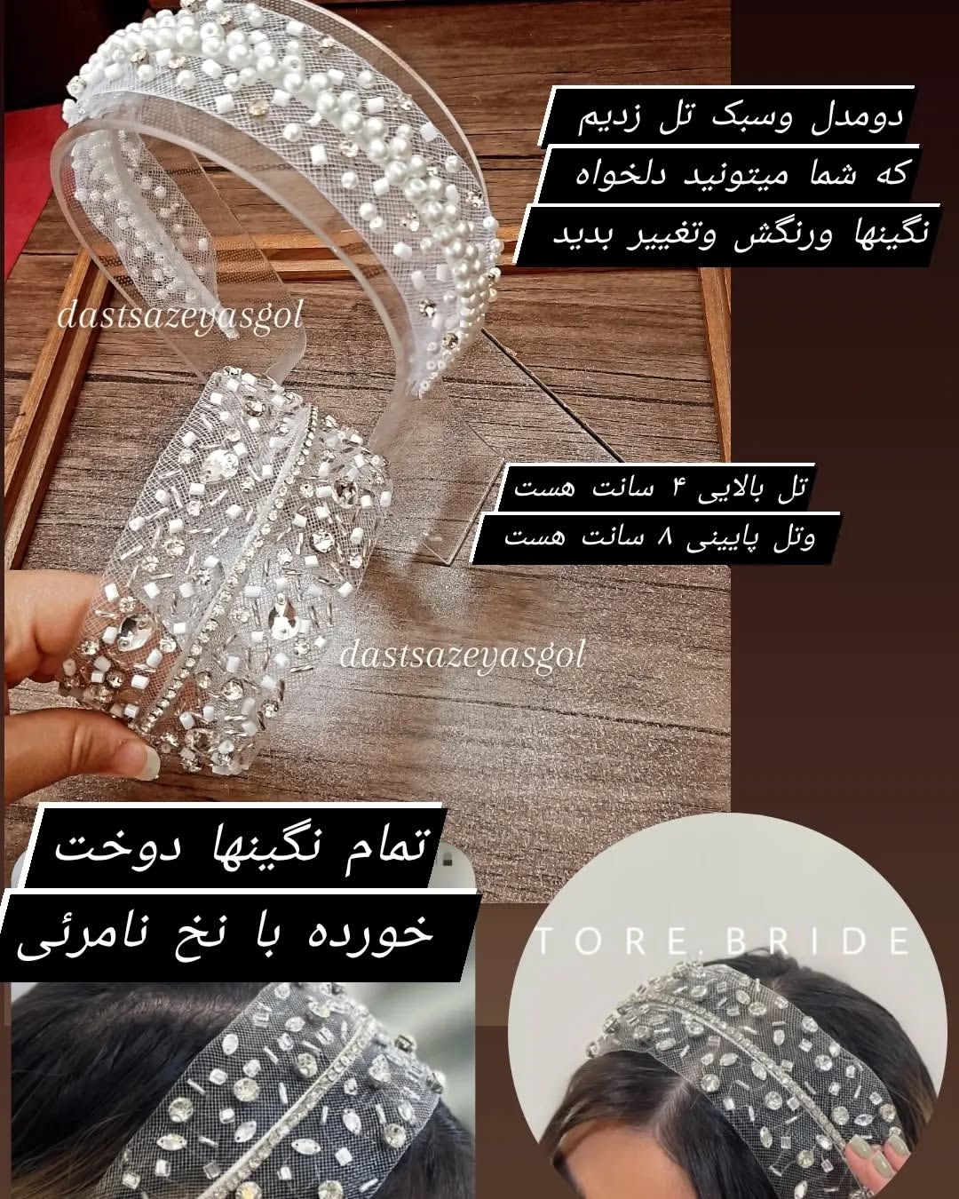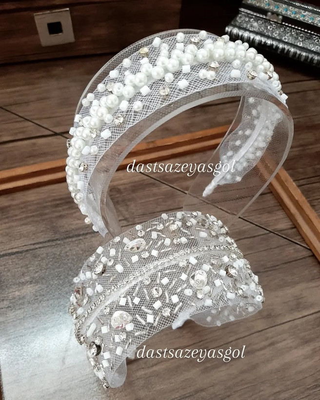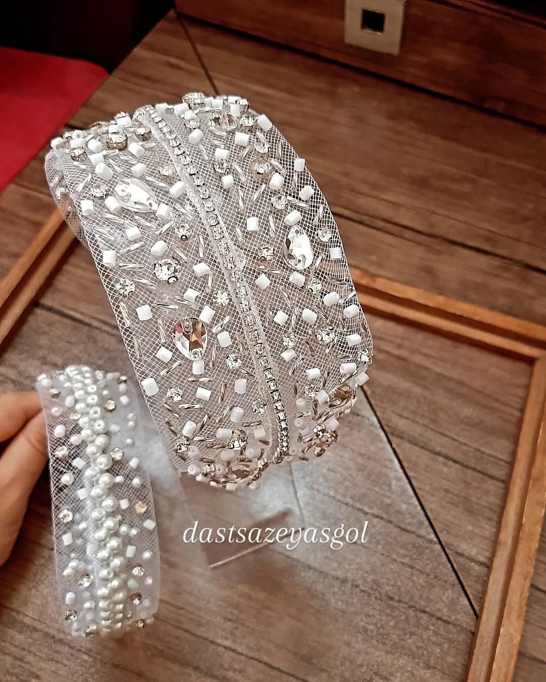 مدلهای تک وخاصه با دوپهنای ۸ و ۴ سانت، تمام نگینها و مروارید و ملیله دوخت خورده، مناسب برای همه سنین و عروس خانمها برای عقد.