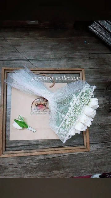 دسته گل لاله باشه اونم با تور برفی خودش یه پا عروسه این مدل که ۲۱ شاخه لاله لمسی با دور گل عروس و دورپیچ دوطبقه تور برفی یه پا عروس شده.
