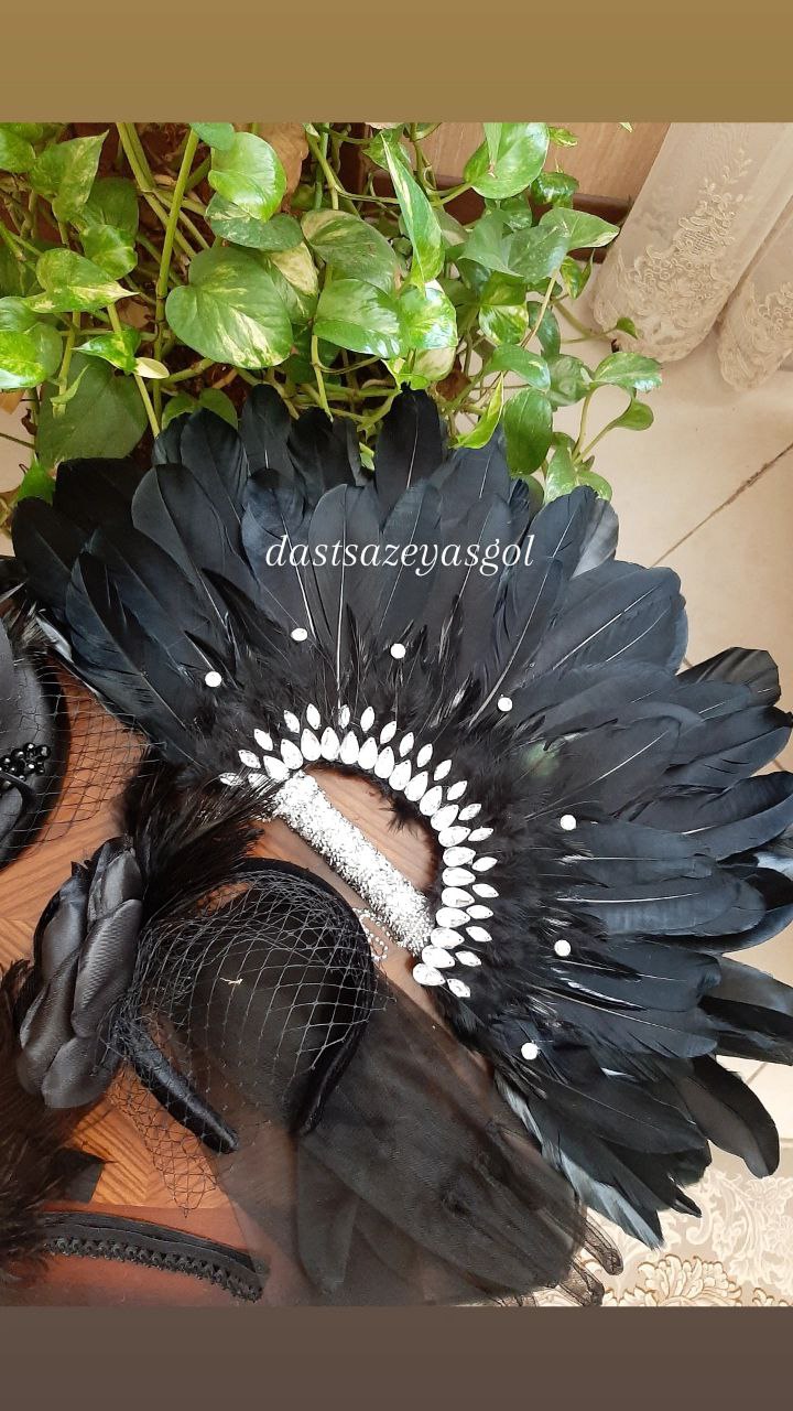 بادبزن پر لاکچری با نگین در دو رنگ سفید و مشکی