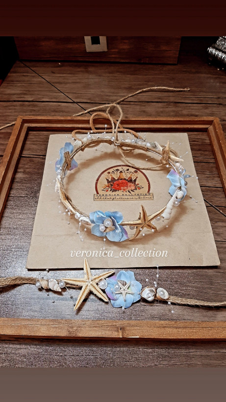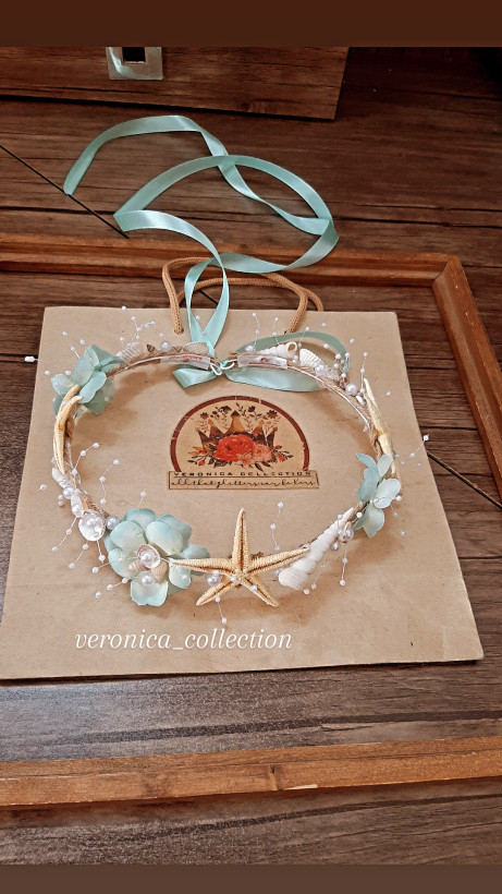 تاج دریایی با ملیح ترین رنگهای دریایی که میتوانید با رنگ دلخواهتان سفارش دهید. همچنین دستبند، گوشواره و پابند برای فرمالیته و نامزدی قابل ارائه است.رنگ دلخواه انتخاب بشه