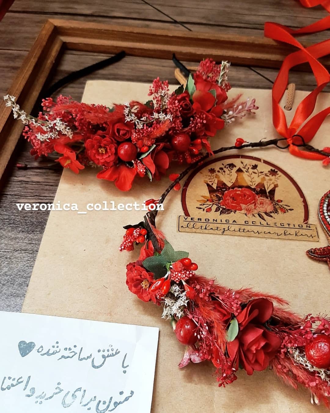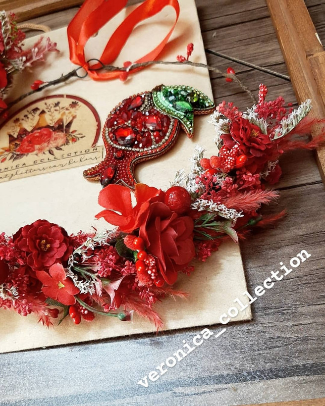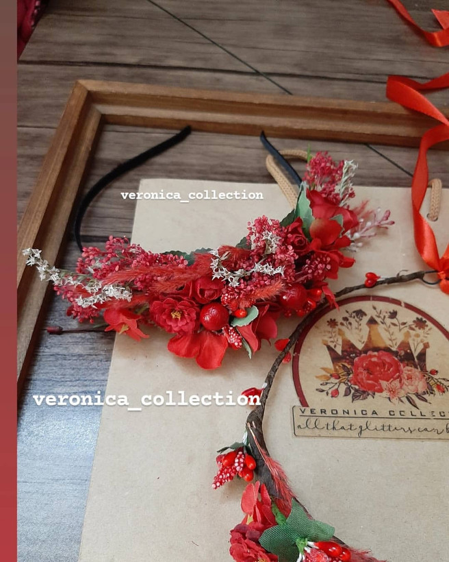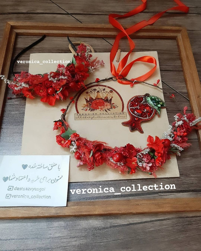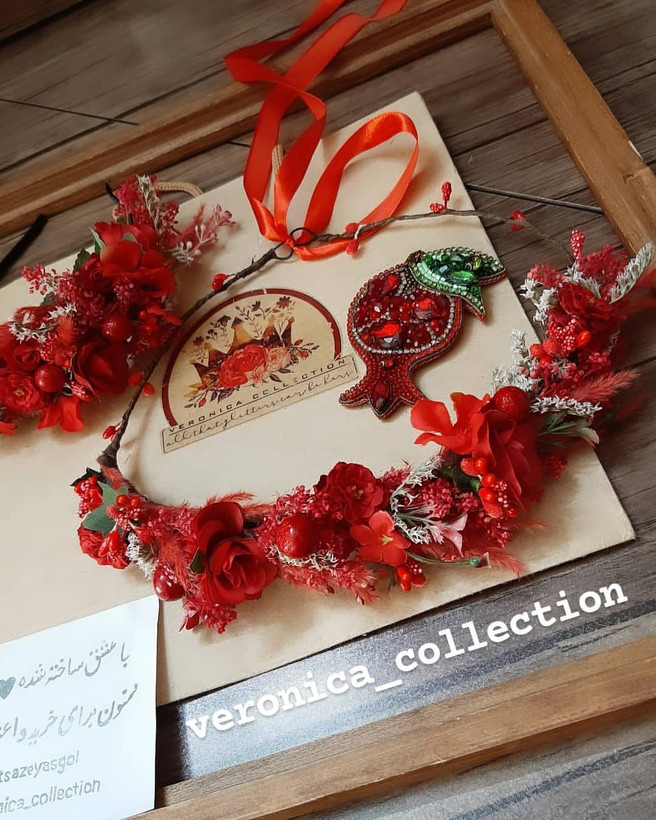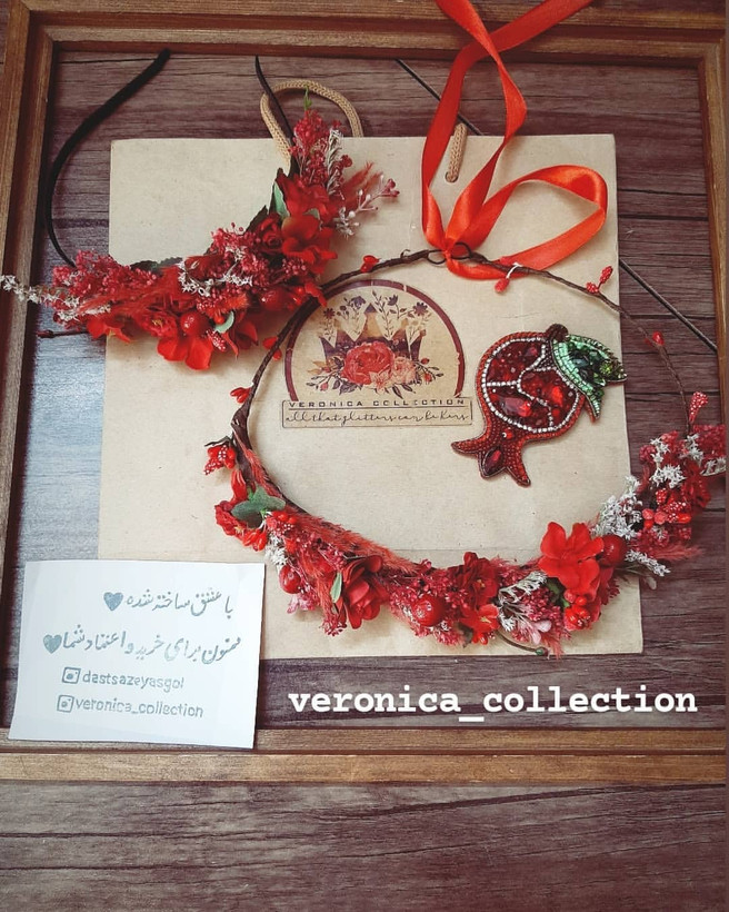 این تاج کلی جزئیات قشنگ داره و خیلی ظریف کار شده. ترکیب گلهای خشک و گلهای مصنوعی هست.