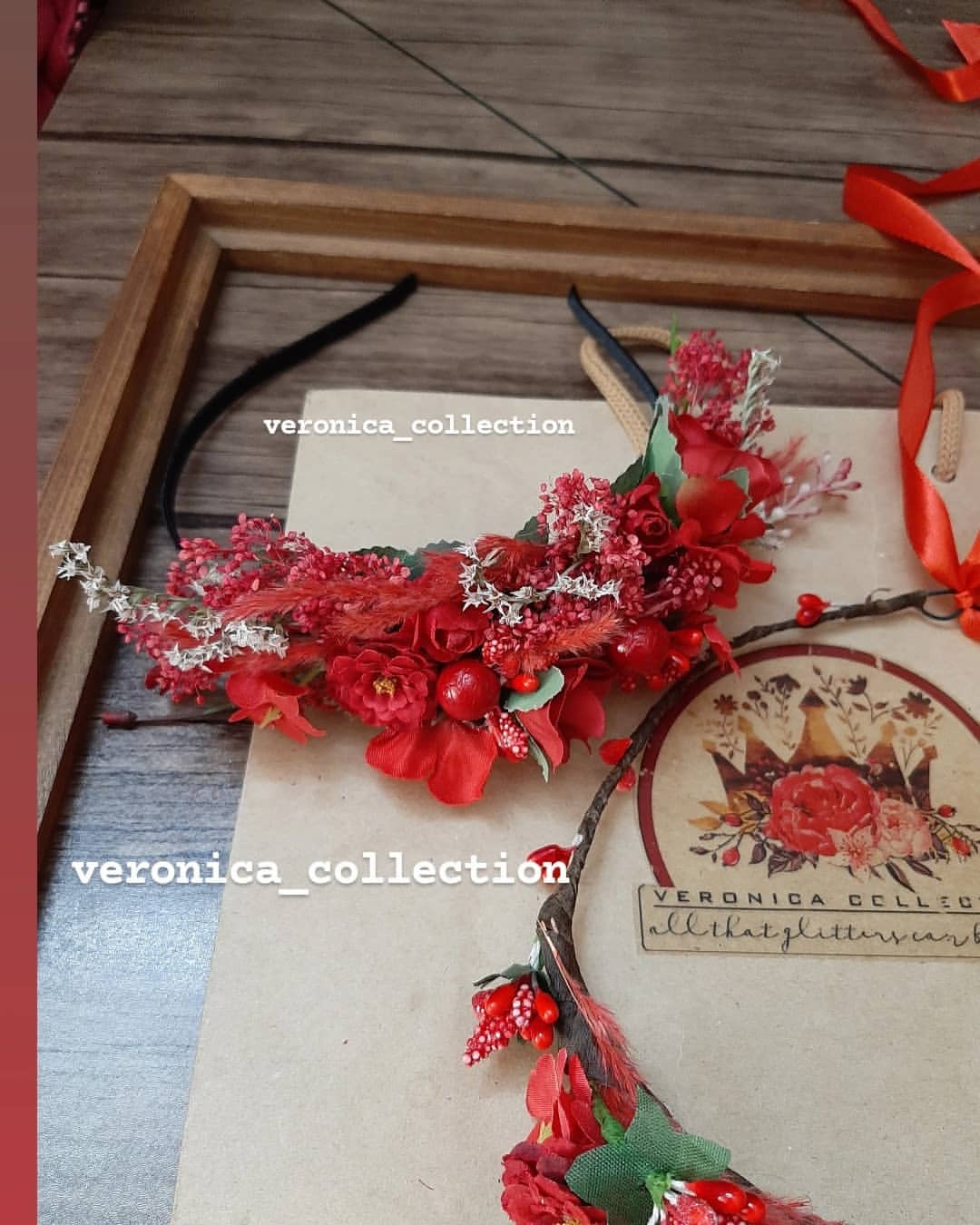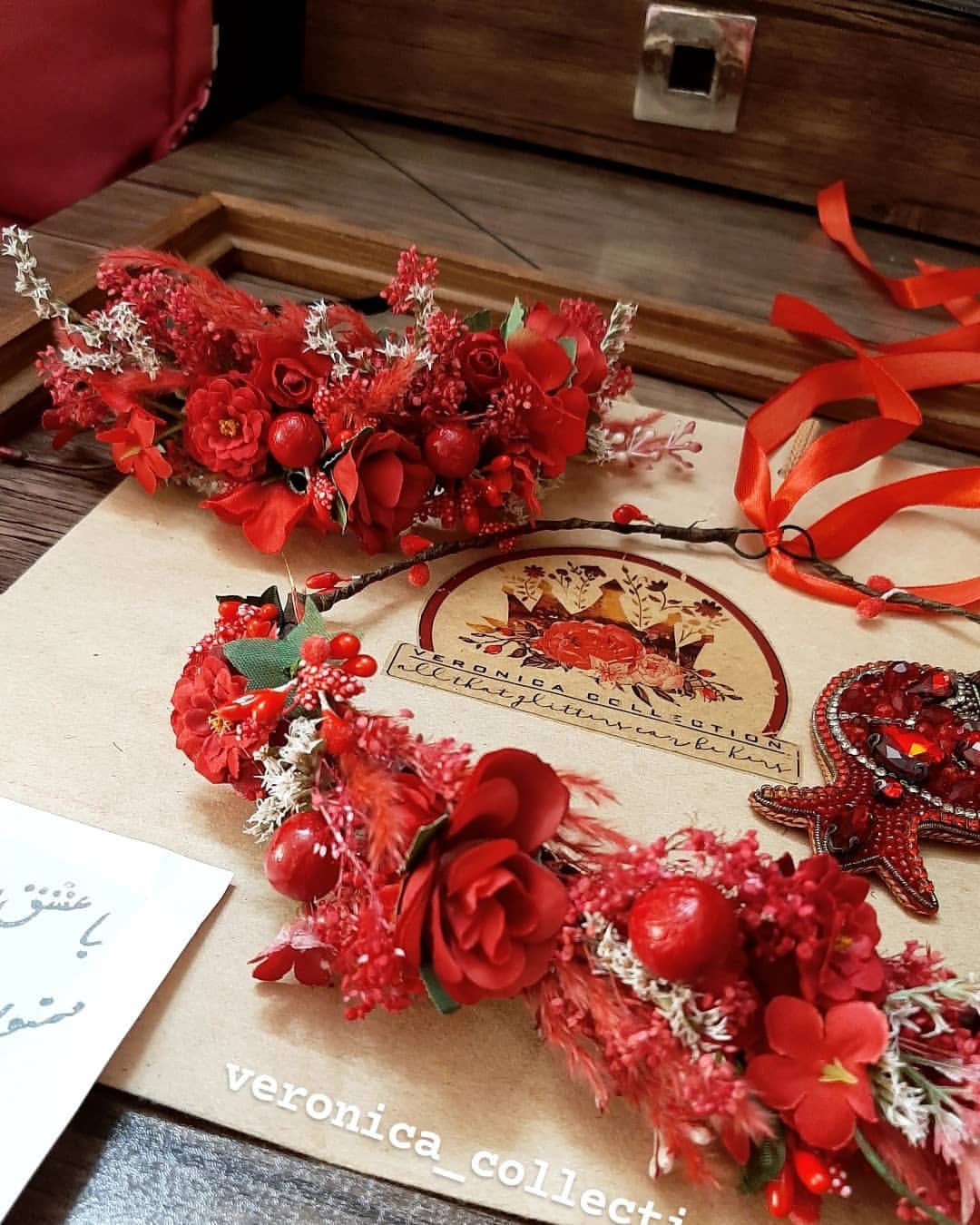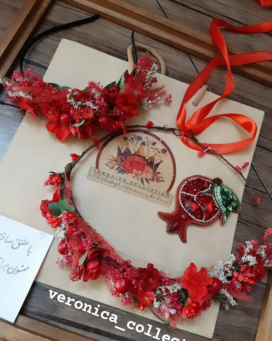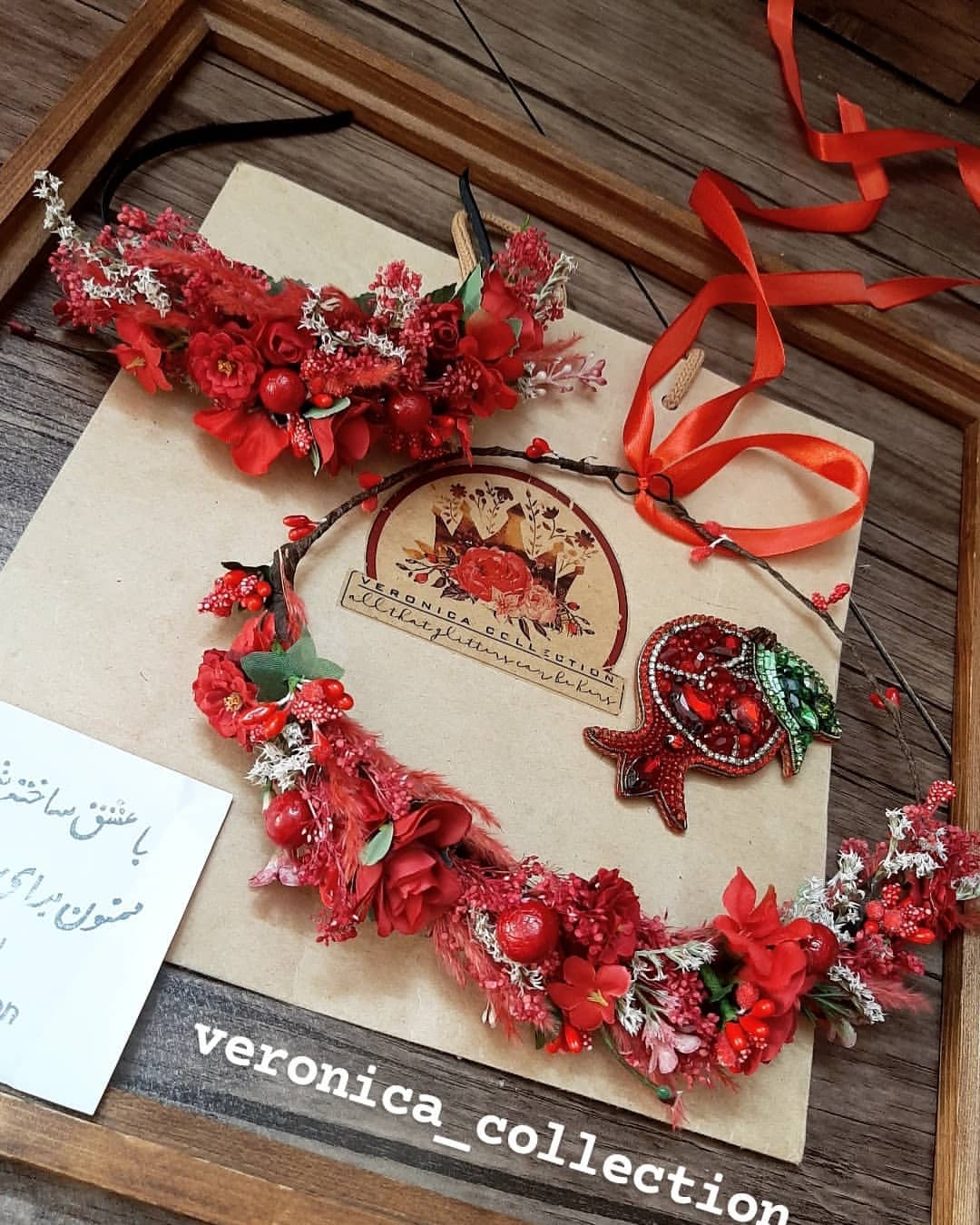این تاج کلی جزئیات قشنگ داره و خیلی ظریف کار شده. ترکیب گلهای خشک و گلهای مصنوعی هست.