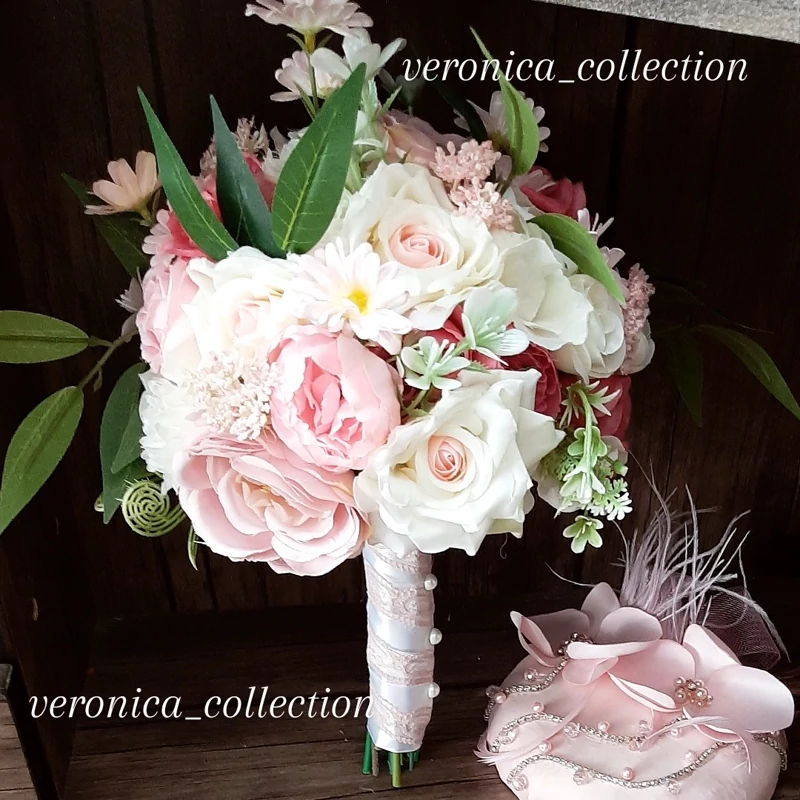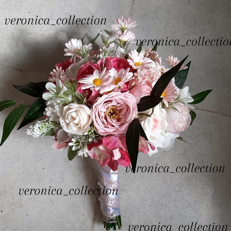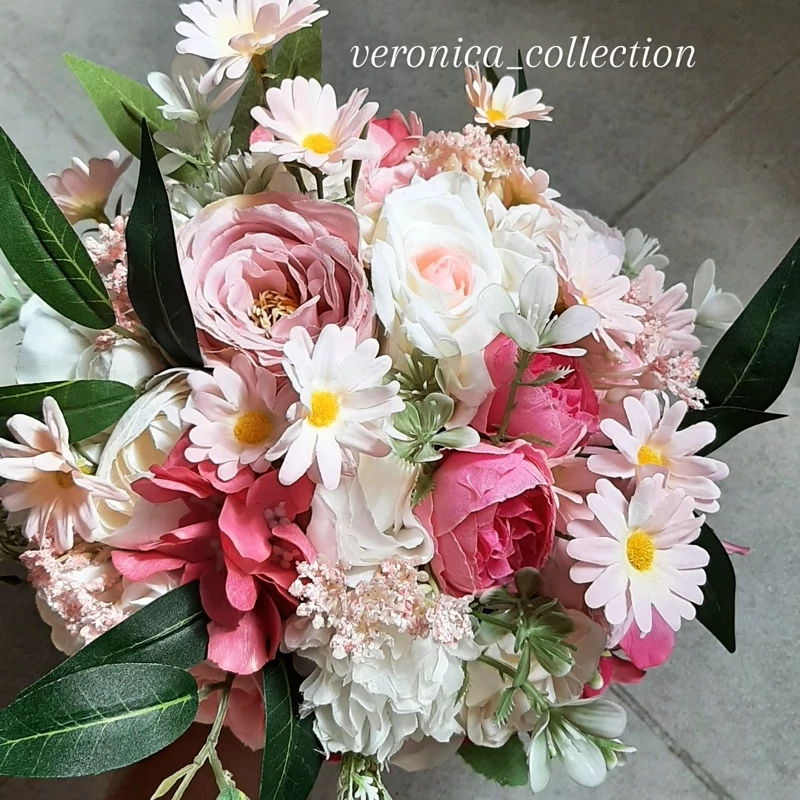 دسته گل مصنوعی تم سفید صورتی وسرخابی