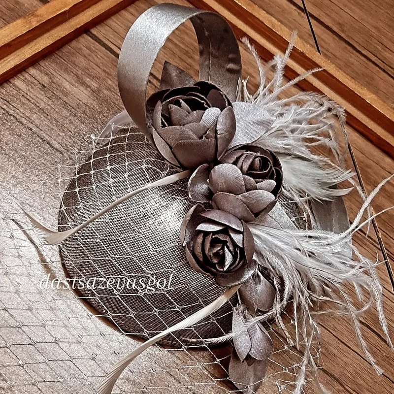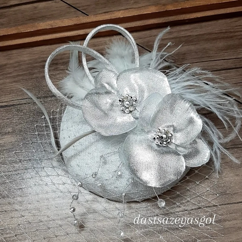 کلاه در سه مدل وسه سبک دیزاین دلخواه که گرد برجسته حدود ۱۲_۱۳سانت هست وتزیینلهای اهاردار دستساز وکلاه اشکی با تزیین گلهای اهاردار وکلاه گرد تخت سایز ۱۵ سانت وتم نقره ای هست وکلا ترکیب توسی ونقره ای عالیه