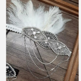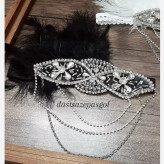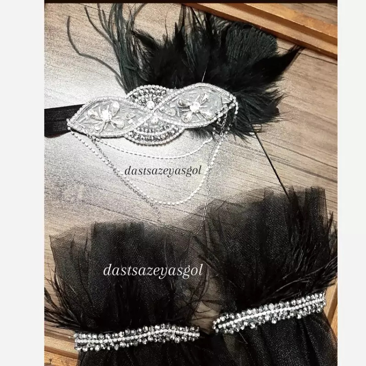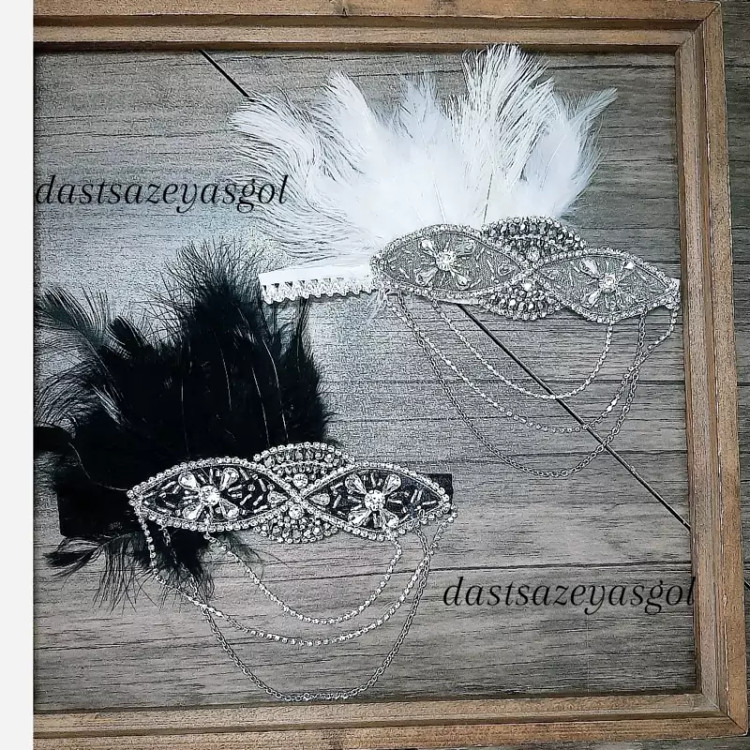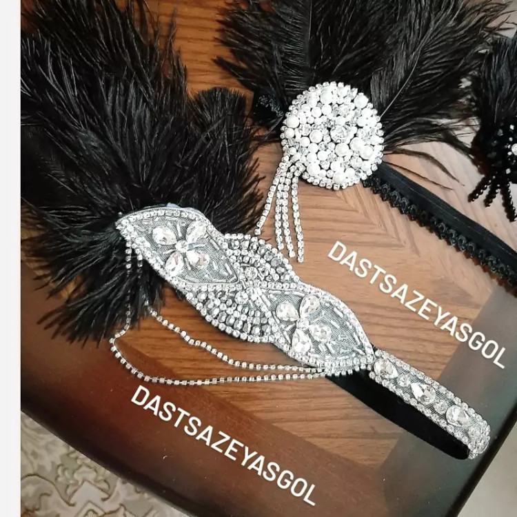 هدپیس مدل سه چشم جواهردوزی شده وتزیین پر در رنگ دلخواه
