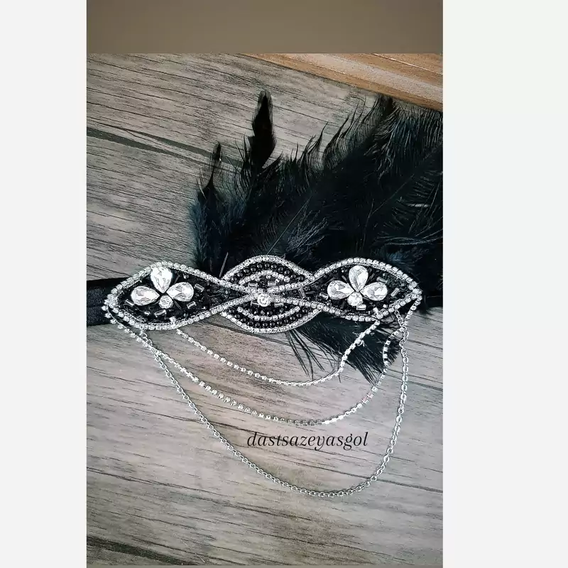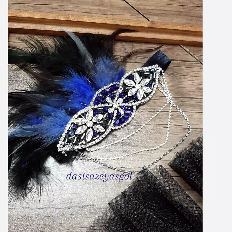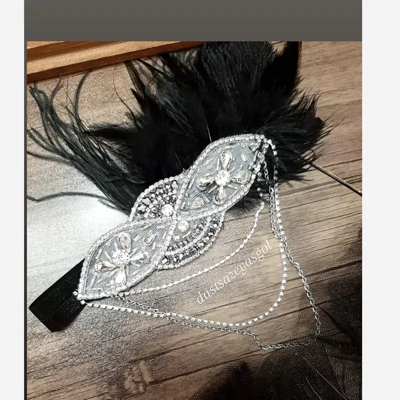 هدپیس مدل سه چشم جواهردوزی شده وتزیین پر در رنگ دلخواه