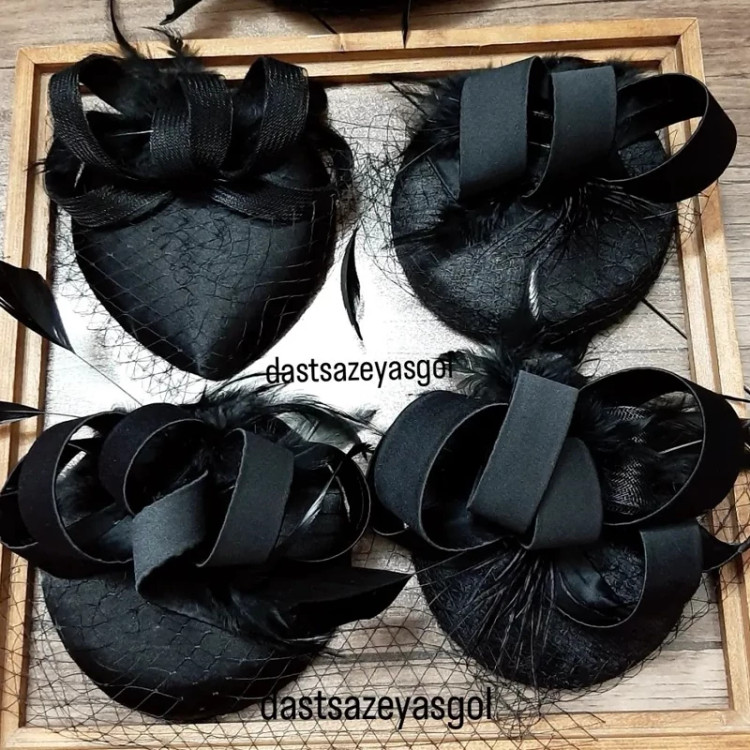 کلاه فرانسوی های مشکی سایز کوچک در سه مدل گرد که حدودا ۱۴_۱۵سانت هست ویک مدل اشکی با روکش ساتن وتزیینات مانیلا مدل مورد نظر را بفرستید پیام بدید زیر کلاها گیره انبری داره
