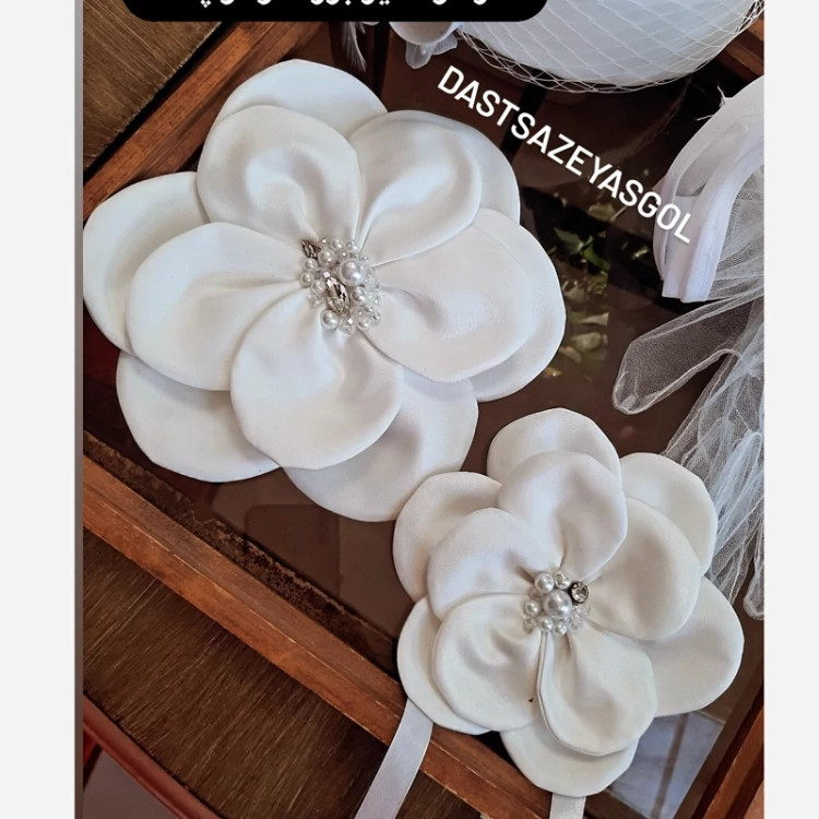 گل سینه گل دستدوز ودوختی با پارچه ساتن درجه یک در دو سایز بزرگ 20 سانت وکوچک 15 سانت که در رنگ دلخواه ومدل وسط دلخواه جواهردوزی یا ساده و سایز دلخواه قابل سفارش هست