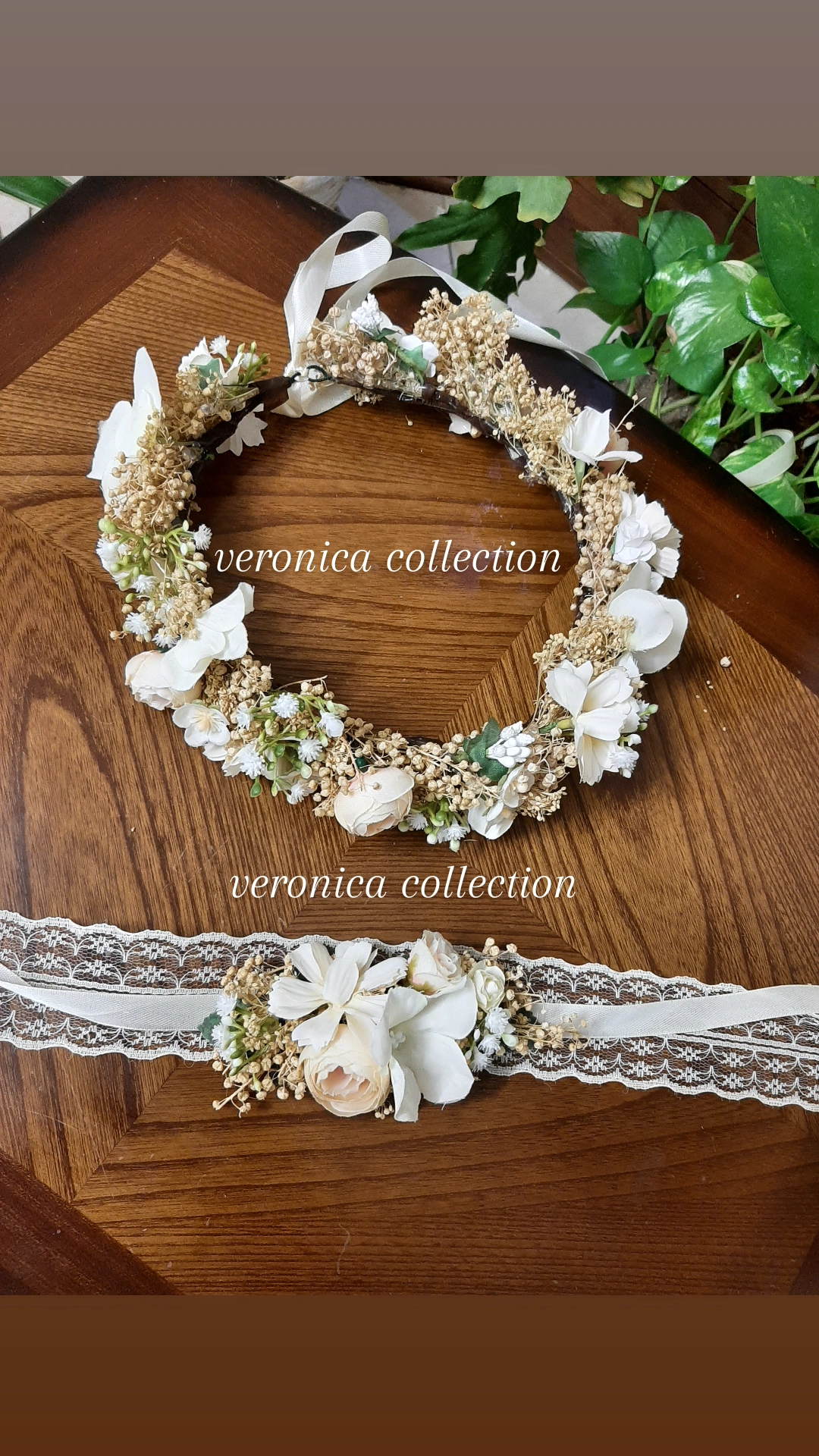 تاجگل مصنوعی ترکیب گل مصنوعی و گلهای خشک وحشی بسیار مقاوم هیت و تم کرم و نباتی اجرا شده