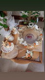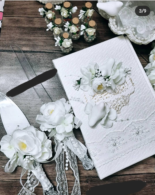 ست جذاب عقد شامل اسکتند جا حلقه وتاجگل و مچبند وگل داماد وقندساب عقد وجام عسل