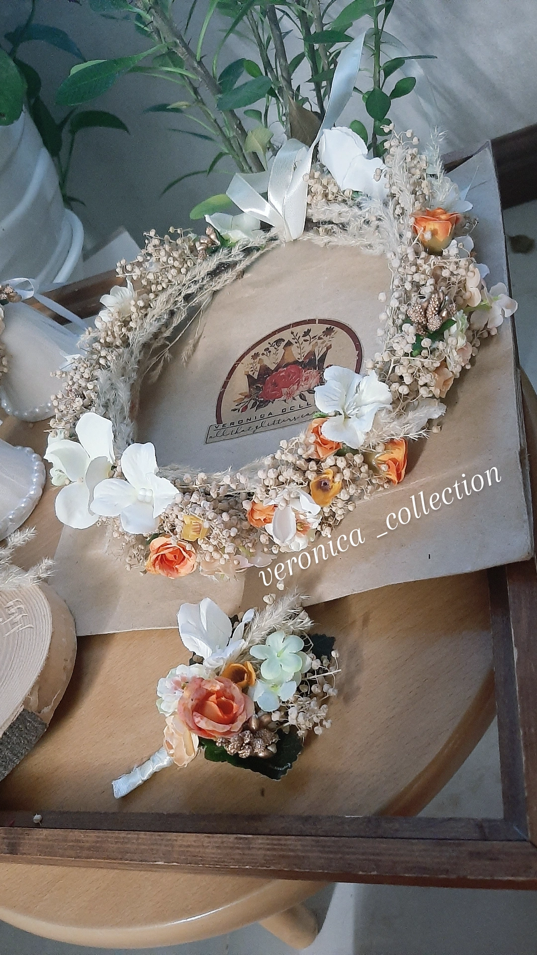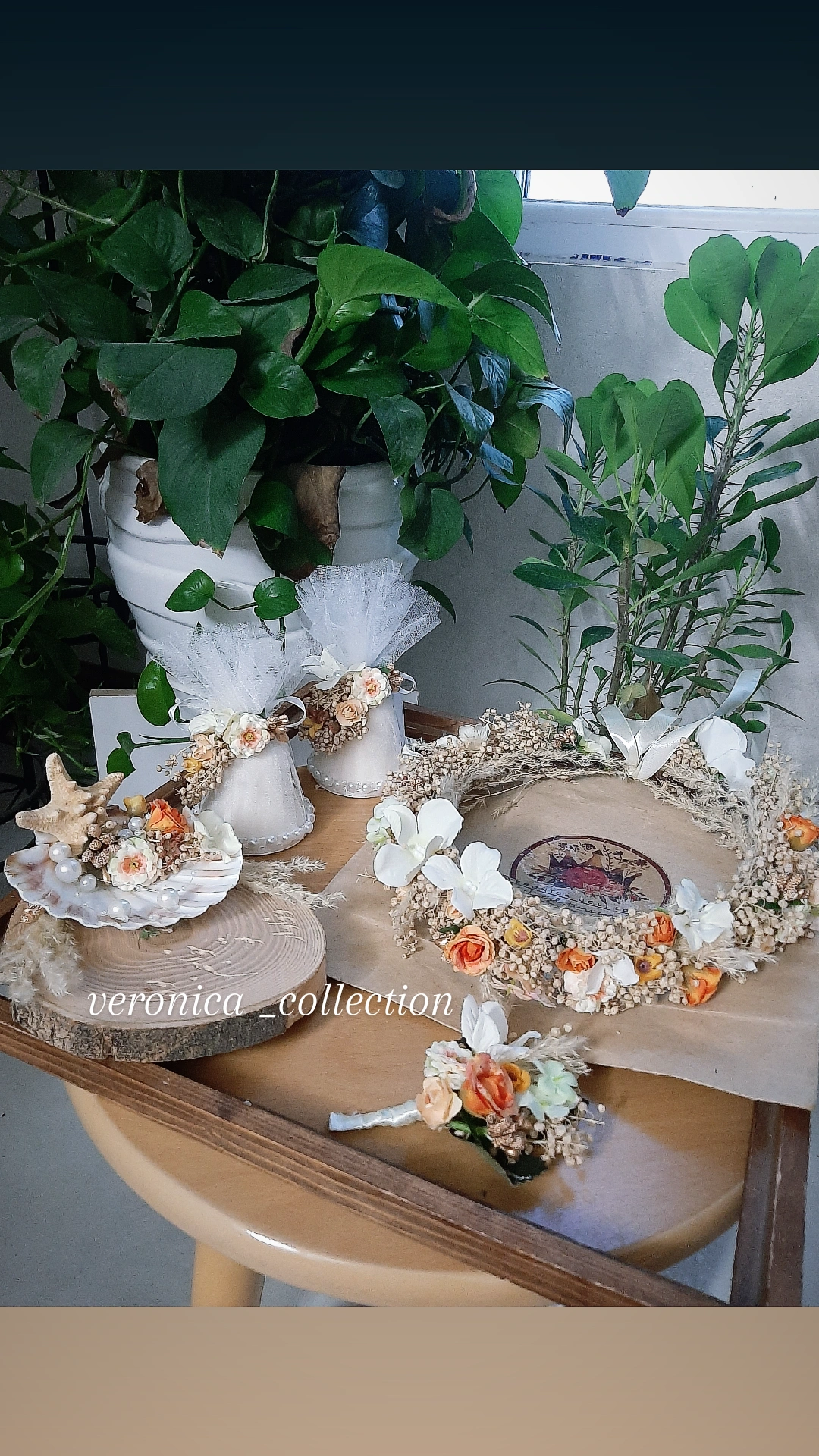کجا اخه میتونی با تاج گلت ست تزیینات عقدتو داشته باشی با تنوع بالای رنگبندی ومدل فقط ورونیکا @veronica_collection این ست جذاب شامل تاج گل وگل داماد واستند جا حلقه وقندسابهای نقلی سفره عقد که تزیین ست تاجگل عروس خانم طراحی شد دختر میتونید درتم رنگی دلخواه همه موارد رو بدید تزیینات عقد شامل سفره عقد_جام عسل_قران_قندساب_جاحلقه وساعت_شکون یا گیفت_خودکار امضا_ودسته گل وتاجگل هست برای ومشاوره و واتساپ وپیامرسانهای دیگه درخدمتم 09191931447