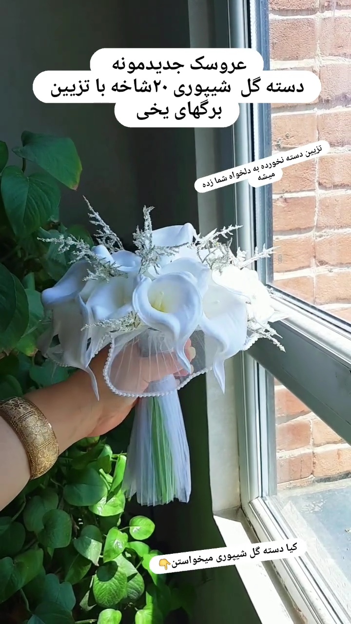 دخترا ۴/۴/زدیکه ها دسته گل شیپوری تمام سفید لمسی درجه یک با تزیین برگهای یخی از ترندهای امسال که تور پلیسه هم خورده زیر کار تزیین دسته اش به دلخواه خودت میخوره پاپیون یا ربان چاپی هم میتونی بدید تعداد شاخه گلهای شیپوری هم خودتون انتخاب میکنید ولی برای مراسم عروسی بالای ۱۸ شاخه مناسبه حالا تو انتخابت لاله هست یا شیپوری کن تا با تخفیفش وبرات بفرستم