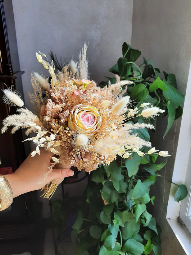 این سبک دسته گلها خوراک فرمالیته هستن میدونی چرا اولا سبک وحشی وشلوغ وطبیعت دارن دوما بسیار سبک وراحت هستن برای تایم طولانی دستت باشه اذیتت نمیکنه سوما بسیار مناسبی داره وتنوع رنگی گلهاش خیلی زیاده پس تو انتخابش شک نکن تو تم رنگی گلهاش ومیگی وطراحیش از ما در ضمن این دسته گل سه تا سایز کوچک ومتوسط وبزرگ داره الان این مدل عکس متوسطه