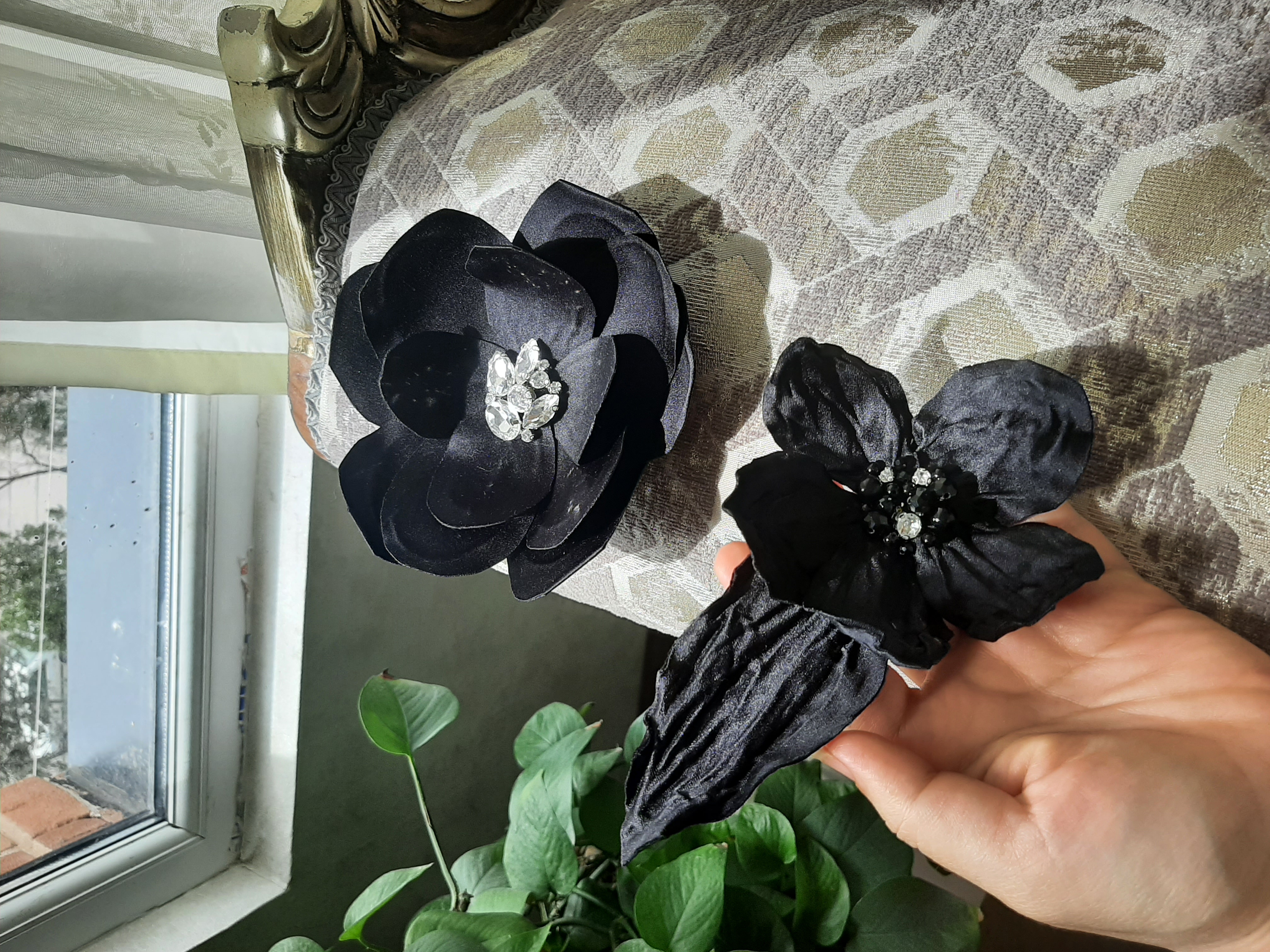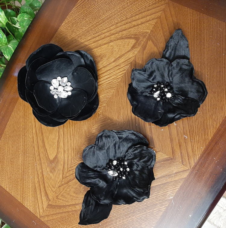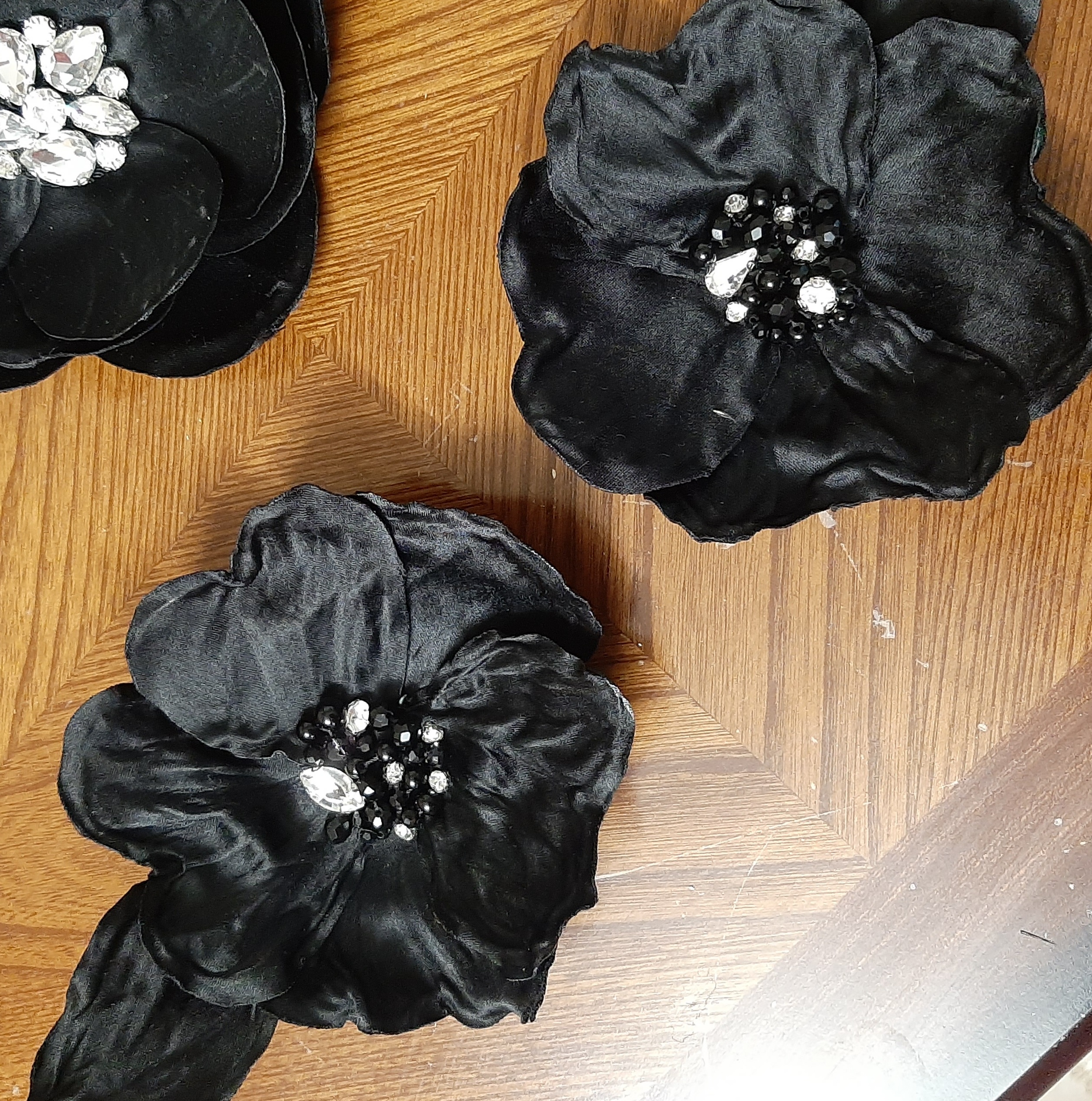 این گلها همه دستساز هستن و براساس سایز تعداد گلبرگ میخوره سایزهای بزرگ دوردیف یا بیشتر میخوره رنگ و سایز دلخواهتو میتونی انتخاب کنی یا بهم پیام بده واتساپ جنس گلها معمولا ساتن امریکایی هست مگر رنگهای خاص برای تزیین لباس و هر چیزی متاسبه وسط گلهادلهواه دیزاین میشه جواهردوزی میشه و برگهای اضافه حدا تعداد و قیمت خورده سایز برگها متناسب گل زده میشه