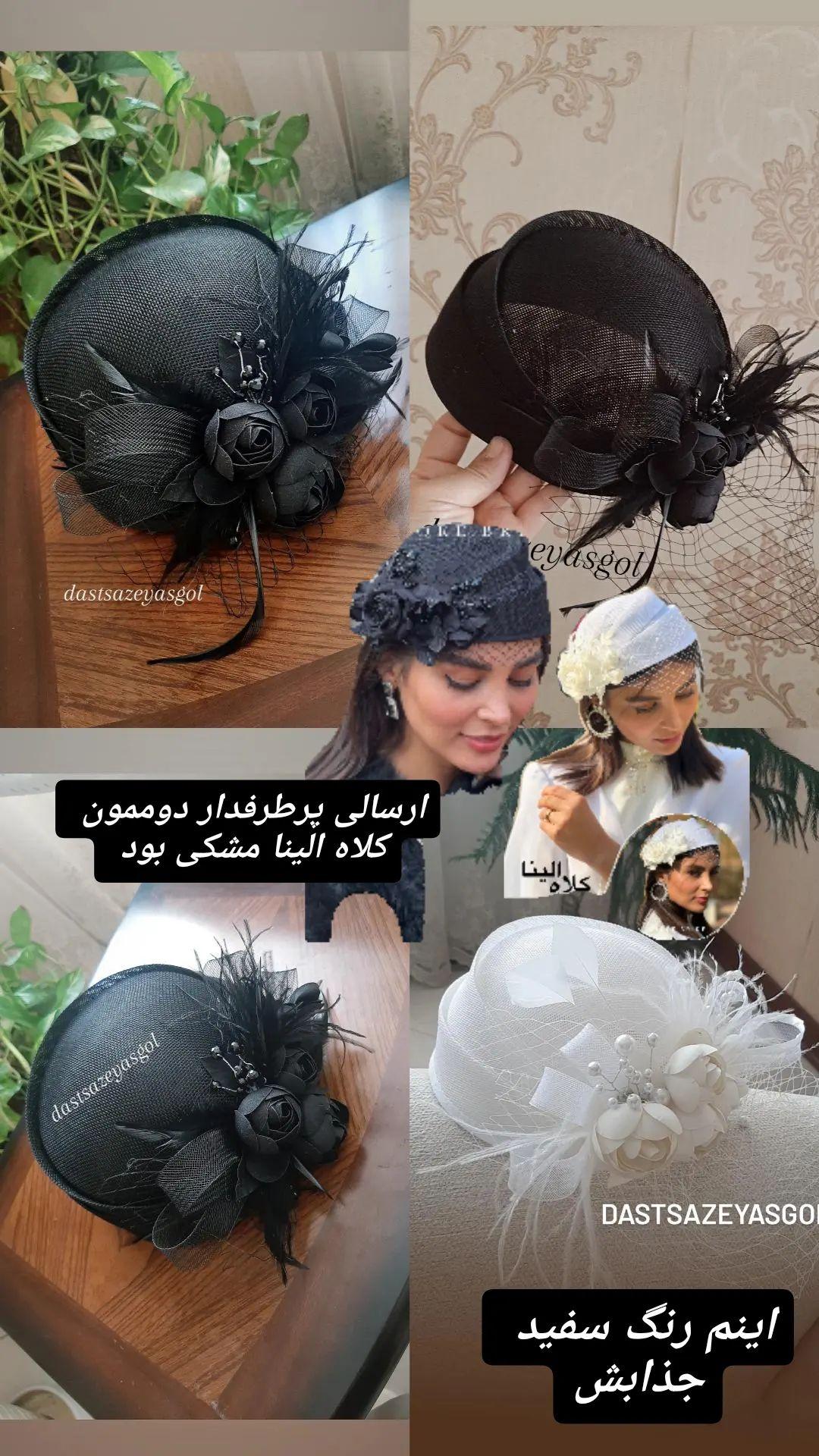 کلاه فرانسوی الینا بزرگ که کلاه وارداتی درحه یک هست در 5 رنگ سفید ومشکی وکرم شیری وسبز وقرمز وتزیینهای متنوع کامل سر داخلش میره