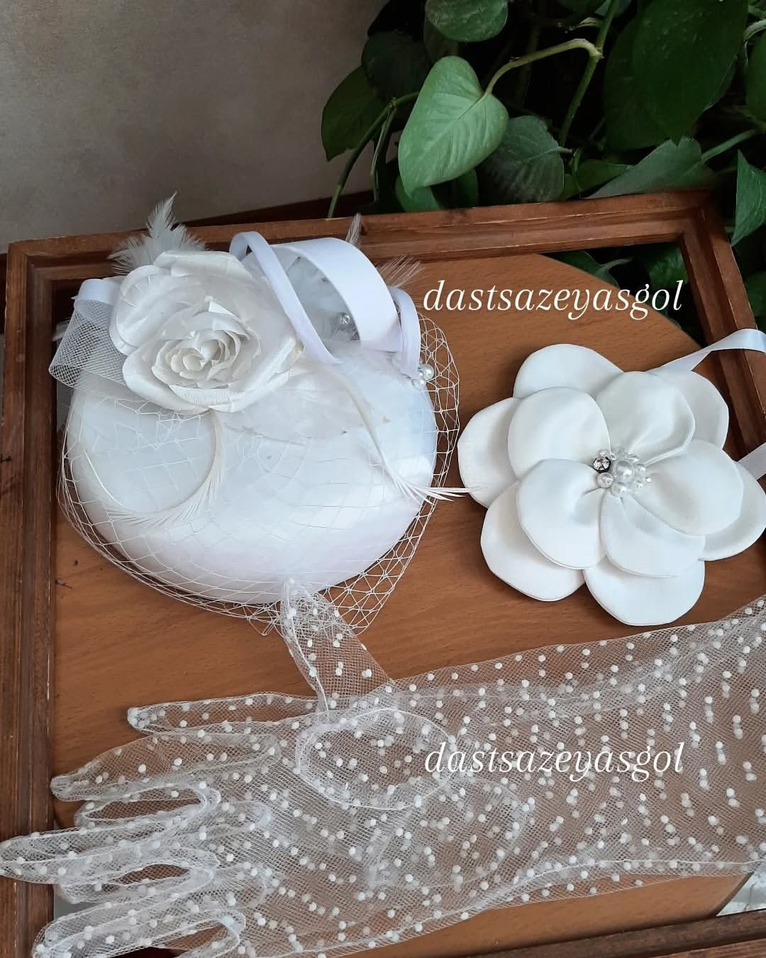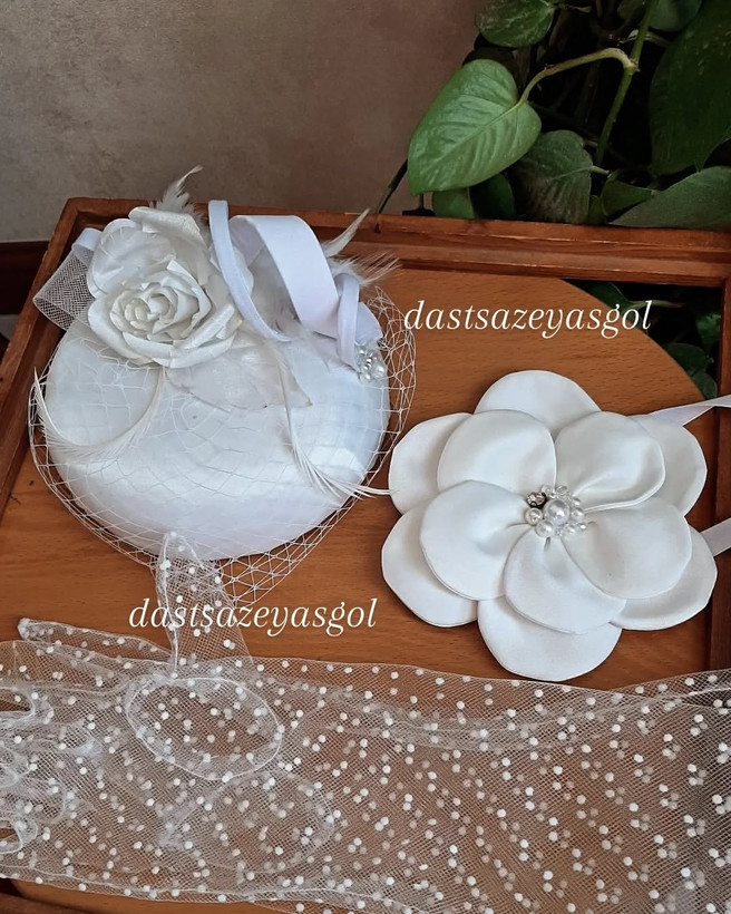 این کلاه گرد تخت هست حدود ۱۷ سانت بزرگتر از سایز نرمال با تزیین گل رز جذابمون. همچنین گل یقه سایز کوچیک حدود ۱۵ سانت هست از ترندهای امسال که هم به عنوان گل یقه هم ستجاق سینه میتونید در رنگ دلخواه سفترش بدید.