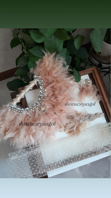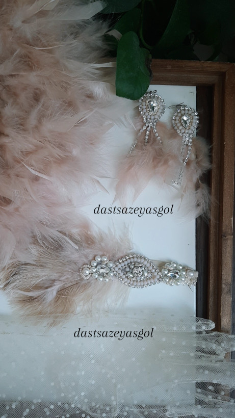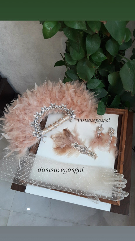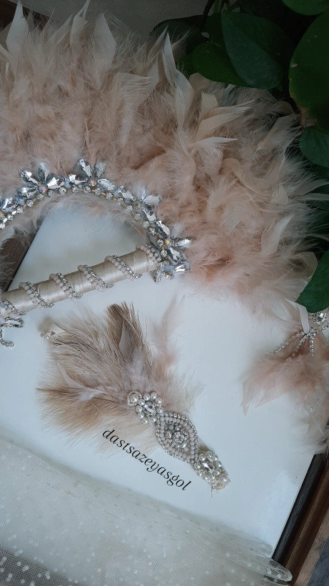 ست کامل گتسبی شامل بادبرن پر، هدپیس جواهردوزی، گوشواره و گردنبند بلند و دستکش کوتاه یا بلند در رنگ و تم دلخواه میتونی بدی. میزبان و مهمانها باید ست کامل داشته باشند. تمام کارهای هدپیس جواهردوزی دستدوز حرفه ای هست.