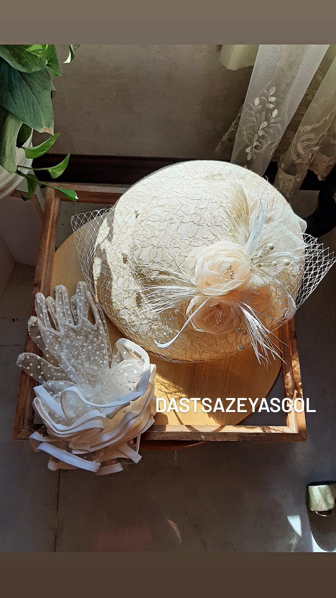 این کلاه با ترکیب رنگ دلبر و دستکشهای چین دار کوتاه طراحی شده است. مناسب برای خانمی که در یک عروسی به پوشش خود اهمیت میدهد.
