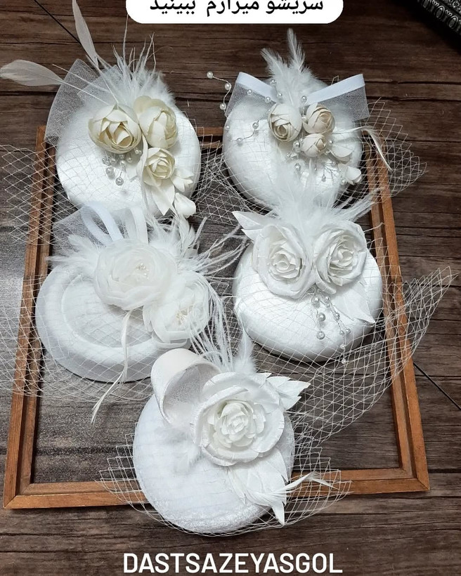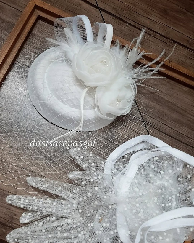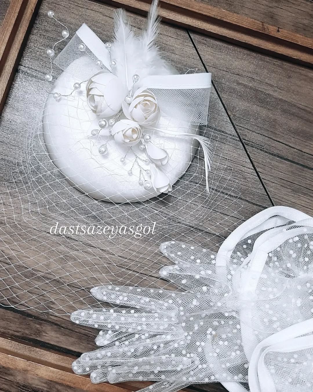 کلاهای کوچک سفیدمون در مدلهای مختلف، ست با دستکش خالدار یا ساده بلند یا کوتاه.