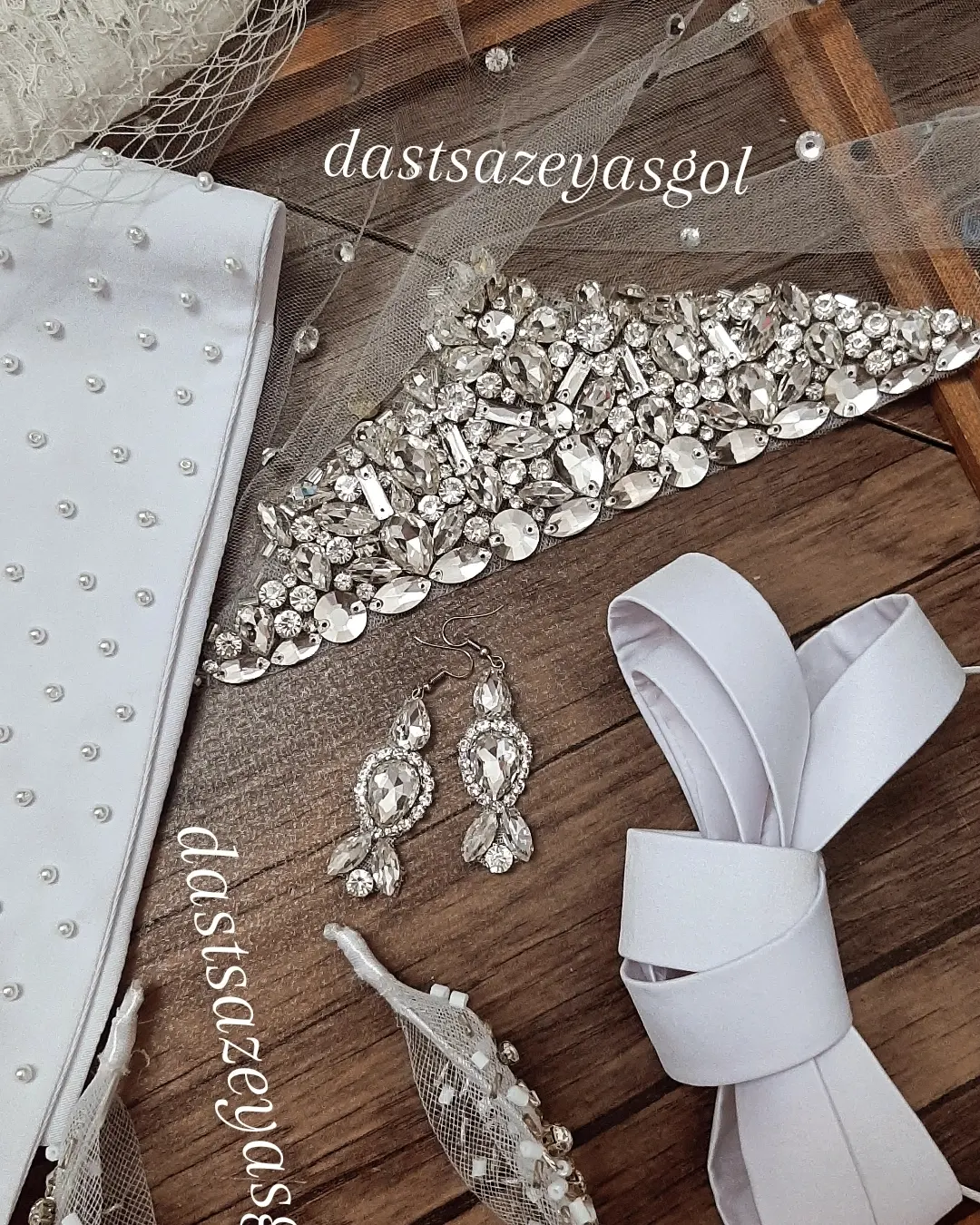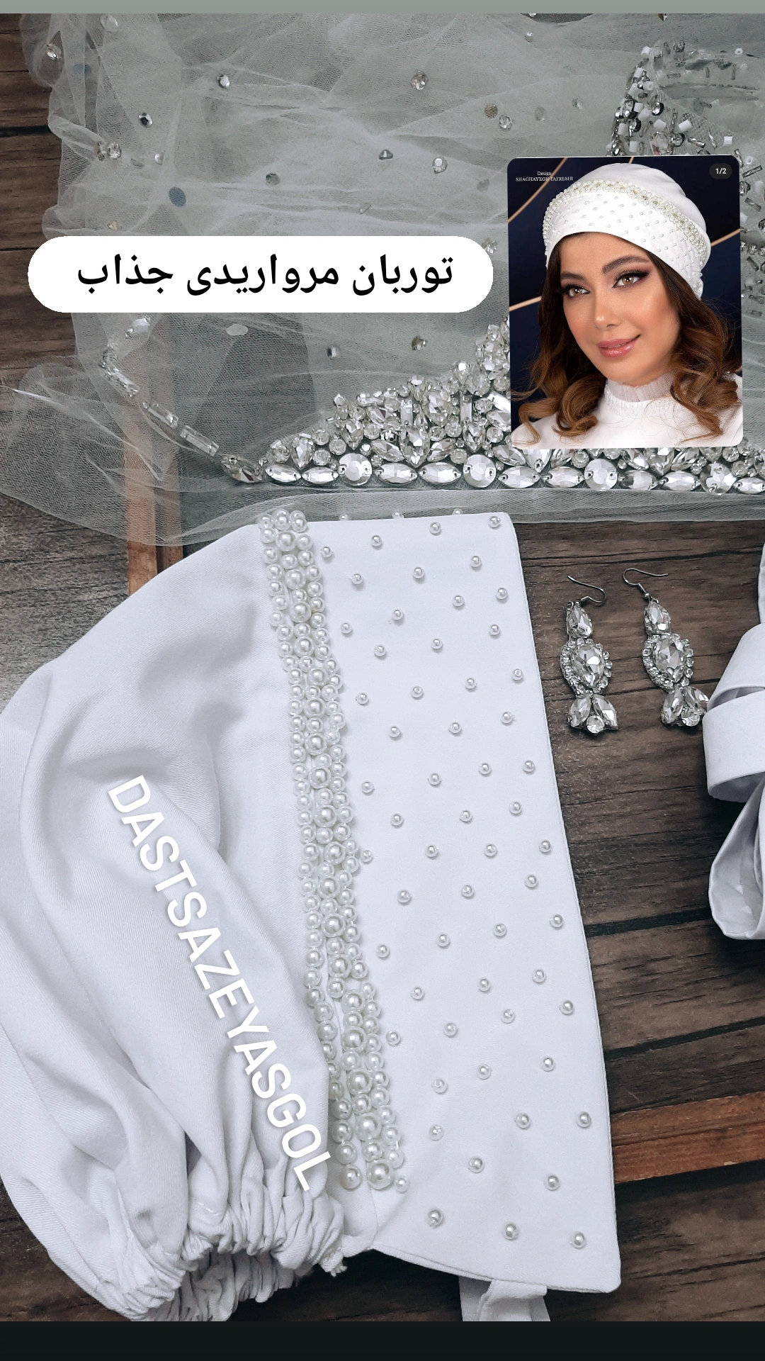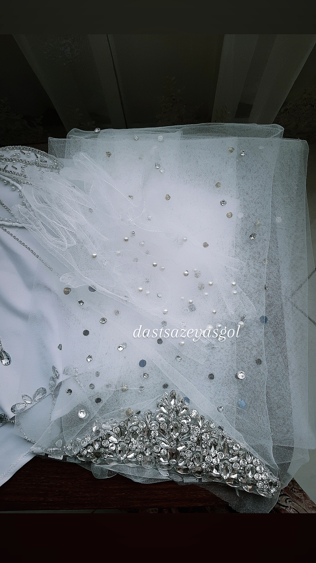 اولین نمونه از تورهای عربی فول نگین و دوخت خورده با روشهای جواهردوزی. این تورها در اندازه دلخواه و تزیین دلخواه قابل سفارش هستند.