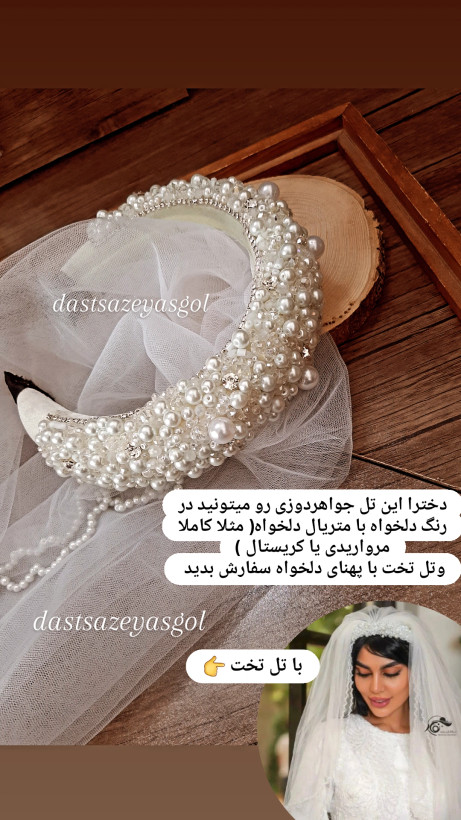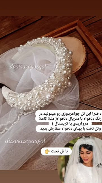 بهترین اکسسوری برای عروس خانمها که مناسب عقد و نامزدی و محضر هست که با هر مدل لباسی ست میشه.تل حجیم حواهردوزی در رنگ سفید شیری مروارید وکریستال کار شده با تور بلند تا زیر کمر که حاشیه دوزی شده میتونید در رنگ دلخواه سفارش بدید ولی بهم پیام بده