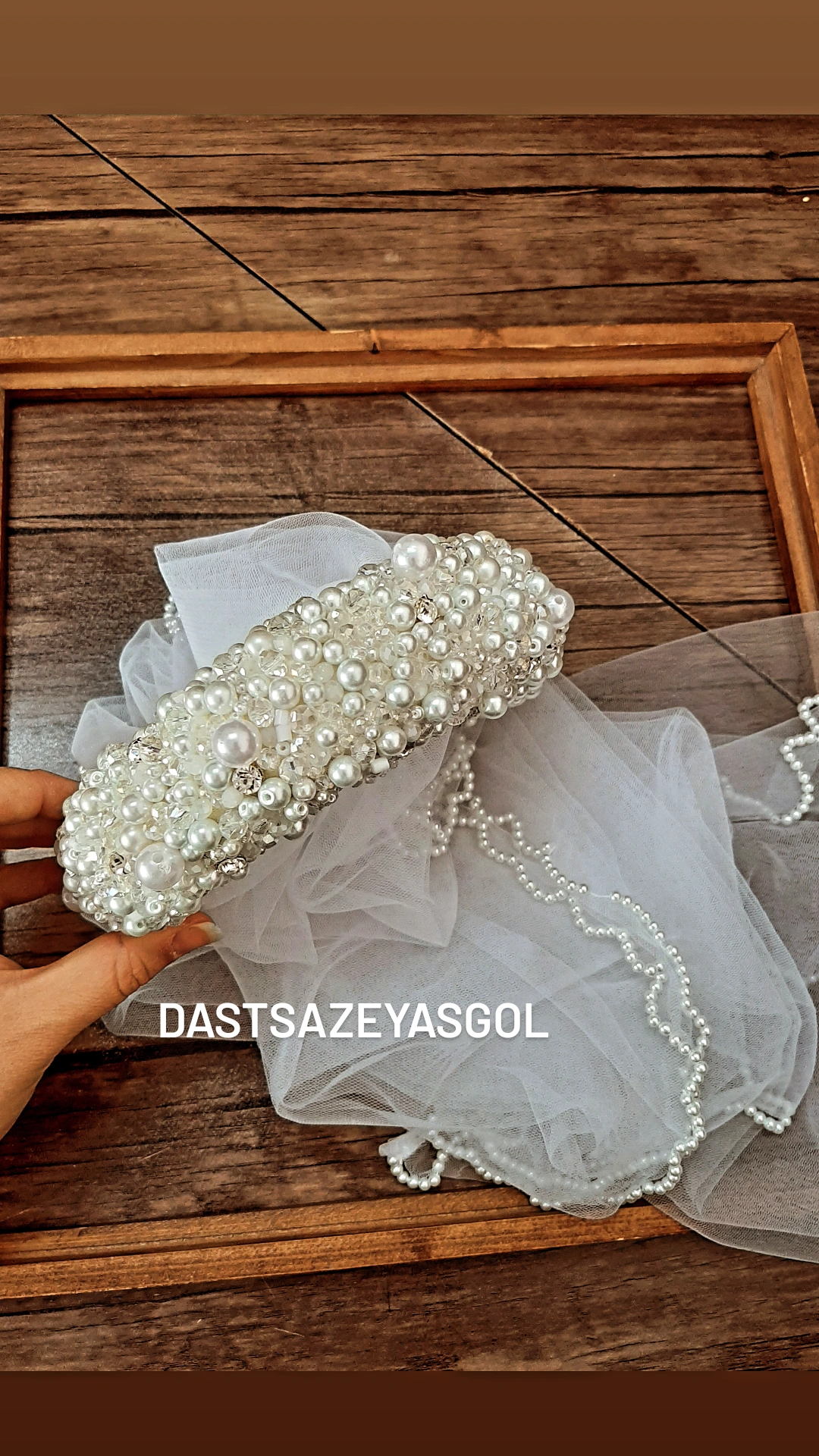 بهترین اکسسوری برای عروس خانمها که مناسب عقد و نامزدی و محضر هست که با هر مدل لباسی ست میشه.تل حجیم حواهردوزی در رنگ سفید شیری مروارید وکریستال کار شده با تور بلند تا زیر کمر که حاشیه دوزی شده میتونید در رنگ دلخواه سفارش بدید ولی بهم پیام بده