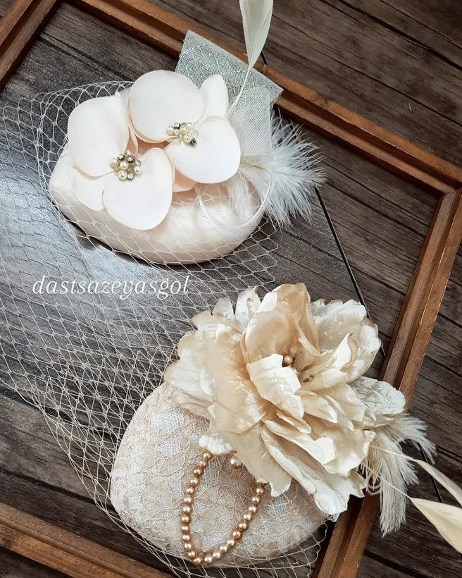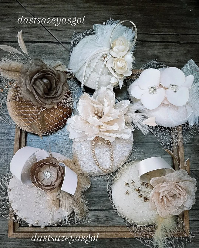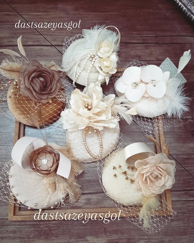 تنوع رنگکرم در تناژهای مختلف موجوده. دل کلاه گرد و دو تا اشکی تخت با تزیین های متنوع براتون زدیم که رنگ کلاه و مدل تزیینها قابل تغییر دلخواه هست. رنگ کرم با تمهای گلبهی و طلایی و شیری و کرم قهوه ای نسکافه ای و شکلاتی و تمام تناژ ان قابل ست کردن هست.
