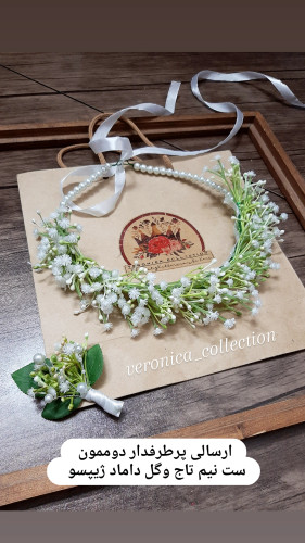 تاج گل ومچبند گل مصنوعی ژیپسو وگل جیب داماد