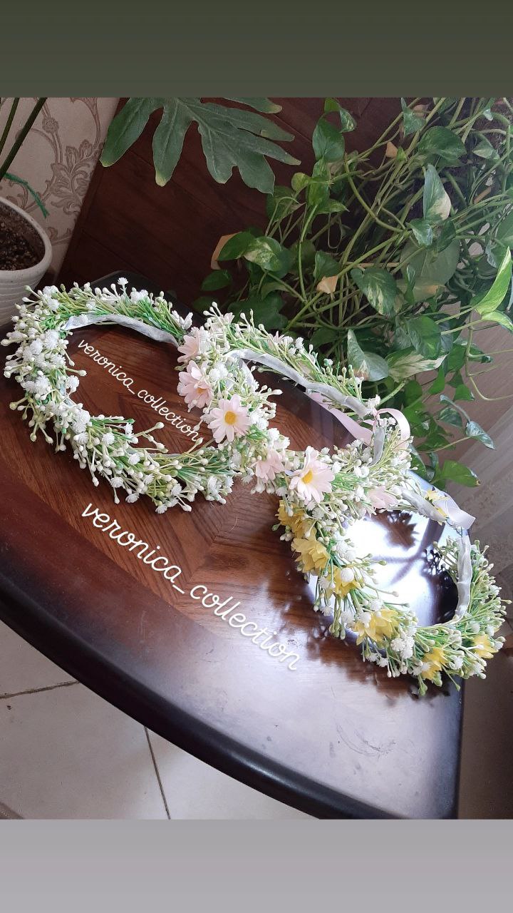 نیم تاج گل و مچبند با تم سفید صورتی