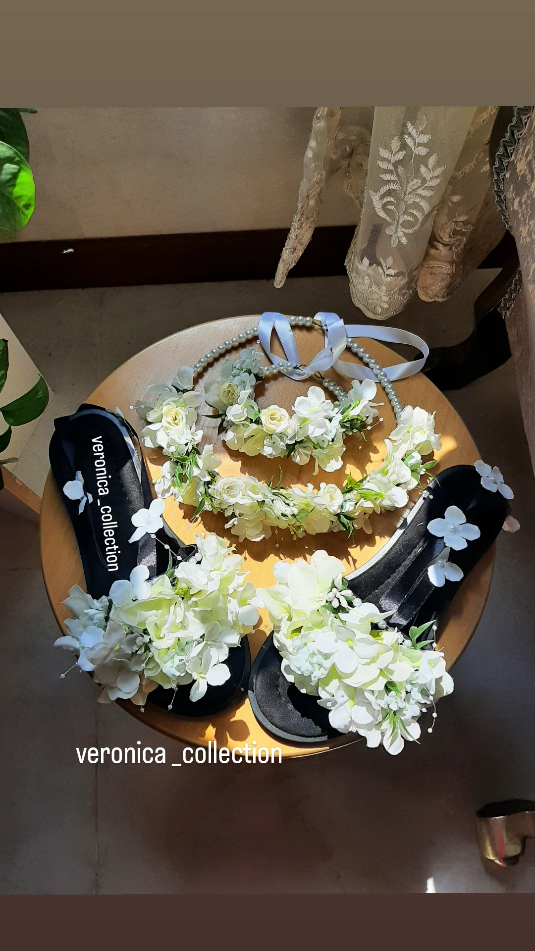 ست جاحلقه ای صدفی عروس وتاج دریایی و پابند و گوشواره و گل داماد