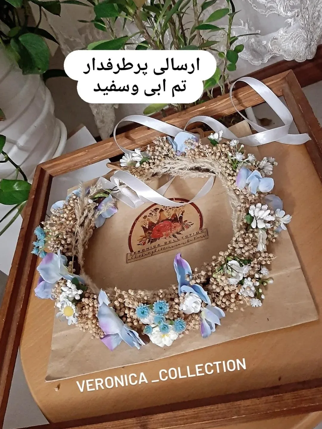 تاج گل شاخه ای ظریف در رنگبندی