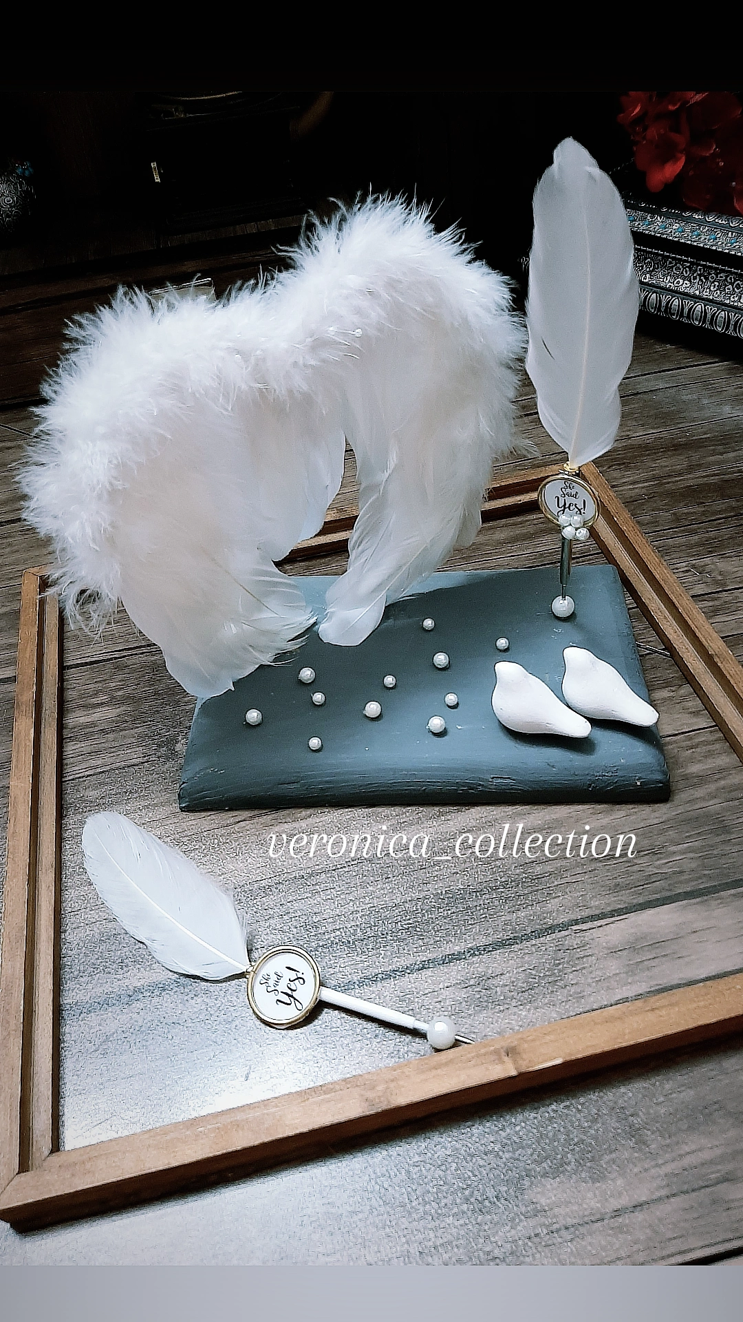 ست دسته گل و تاج گل و گل داماد و گوشواره و استند جا حلقه ای